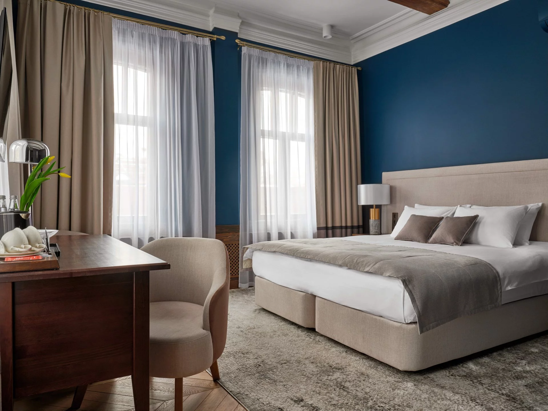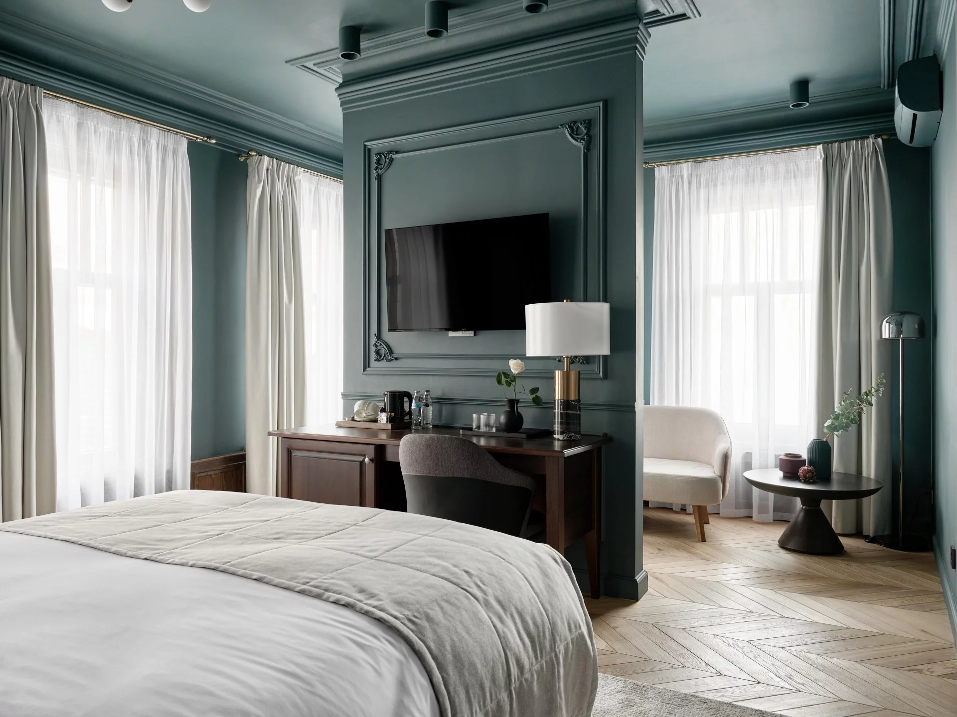 Проект: Нами разработан и реализован проект реконструкции памятника архитектурного наследия в гостиницу 5*. В процессе реализации мы сохранили большинство деталей здания 19-го века, а все что не удалось сохранить было сделано заново по эскизам и чертежам сохранившихся со времен строительства.